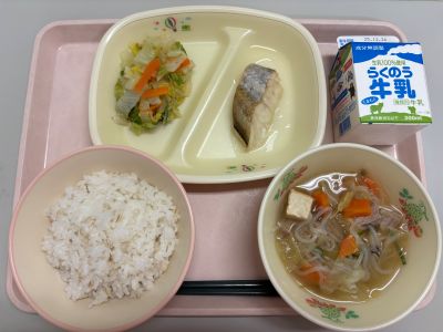 ★麦ごはん ★牛乳 ★すき焼き風煮 ★トマトオムレツ ★こんぶ和え