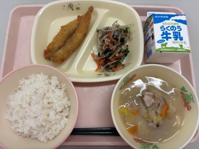 今日は、ししゃもフライを提供しました。まるごと食べることができます。