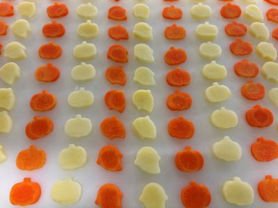 今日は、ハロウィンメニューでした。 スープには、ひとつひとつ型抜きをした人参・じゃがいもが入っており、見て楽しい、食べておいしいスープに仕上がりました。 かまぼこも良いアクセントになってくれました。 またハロウィンといえば!のかぼちゃを使ったコロッケも提供しました。 子どもたちの楽しそうな笑顔を見ることができて、嬉しくなりました。