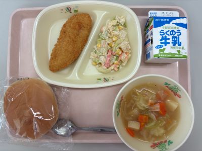 今日は、ハロウィンメニューでした。 スープには、ひとつひとつ型抜きをした人参・じゃがいもが入っており、見て楽しい、食べておいしいスープに仕上がりました。 かまぼこも良いアクセントになってくれました。 またハロウィンといえば!のかぼちゃを使ったコロッケも提供しました。 子どもたちの楽しそうな笑顔を見ることができて、嬉しくなりました。