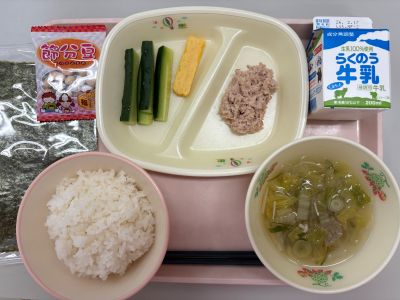 ★食パン ★牛乳 ★わかめスープ ★くじらのメンチカツ ★コールスローサラダ