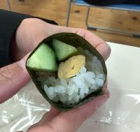 給食週間4日目の今日は、昭和30年ごろのメニューを作りました。 当時、ぶた肉やとり肉などはあまり出回っておらず、安くて栄養価の高いくじらの肉がよく使われていました。 波野学校給食センターで今年度、くじらを使用するのは、給食週間中の1日のみです。つまり、今日だけです! とても珍しい1品ですが、先生方にとっては懐かしさを感じるものでした。 食パンにくじらのメンチカツとサラダをはさみ、カツサンド風にして食べている児童生徒の様子が見られました。 |