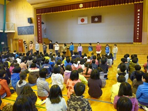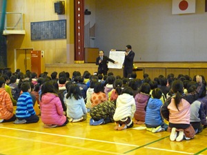 ■さて、学校は1月8日(金)に、3学期のスタートを切りましたが、何と初日に、学校の近くにサルが出現し、急きょ、一斉下校を行いました。初日からばたつきましたが、申年のスタートにサルが現れるとは・・・。縁起がいいかもしれません。■この冬休み中に、子どもと先生たちが大きな事故に遭わなかったことを大変うれしく思います。8日は各教室を回りましたが、どの学級も和やかな雰囲気で新年のあいさつを交わしてくれました。■始業式では、申年にちなんで「見ざる、聞かざる、言わざる」の話をしました。また、「見ざる、聞かざる、言わざる」とは反対になりますが、子どもたちには、「友達の良いところをしっかり見てほしい」「友達の話をしっかり聞いてほしい。授業中に先生の話をしっかり聞いてほしい」そして「自分の考えや思いをしっかり言ってほしい」ということを伝えました。■3学期は、50数日しか課業日がありません。子どもたちの学力向上と豊かな心の醸成のために職員一丸となって職務に当たりますので、どうぞよろしくお願いいたします。