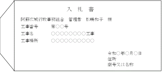 1) 「入札書」、「委任状」、「入札辞退届」などの宛先は、全て「阿蘇広域行政事務組合 管理者 松嶋和子」になります。