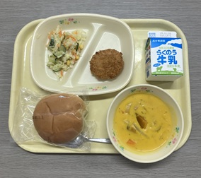 (丸パンカット、チキンカツ、コールスローサラダ)