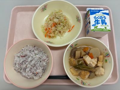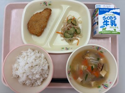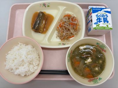 ★白ごはん ★牛乳 ★あおさのみそ汁 ★さんまのゆずみそ煮 ★もやしのごま酢和え