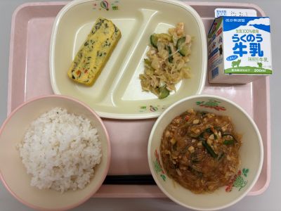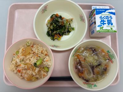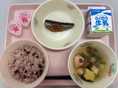 今日は、児童生徒の進級・進学を祝って、お祝いメニューを作りました。