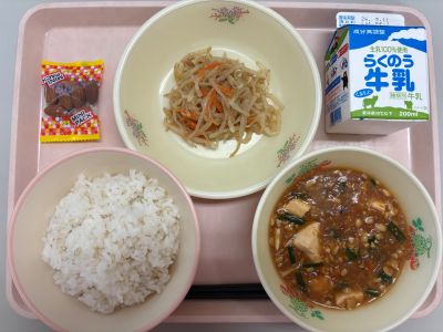 給食時間、ある学年の様子を見ていると、「マーボー豆腐」派と、「マーボー春雨」派の意見の交流が行われていました。