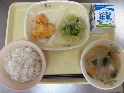 ★麦ごはん ★牛乳 ★すき焼き風煮 ★トマトオムレツ ★こんぶ和え