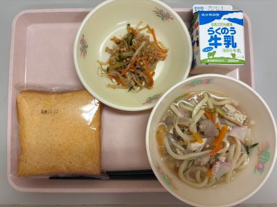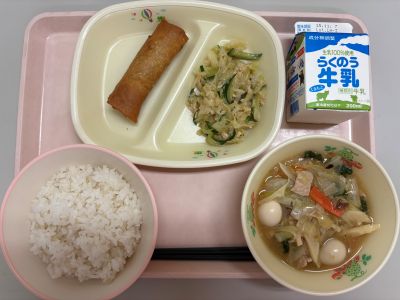 今日は、八宝菜を作りました。 給食時間に保健給食委員会の生徒がクイズを行っており、その中で八宝菜の「八」の意味についてみんなで学びました。 「八種類の」という意味だと思う人が多くいましたが、 実際は、「たくさんの」という意味で使われています。 今日の八宝菜にも、いろいろな食材を使いました。食感も楽しめました。 春巻きは、パリパリの状態で提供することができ、「パリっ」という音がたくさん聞こえました。 |