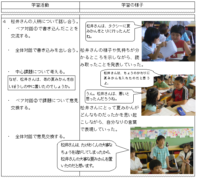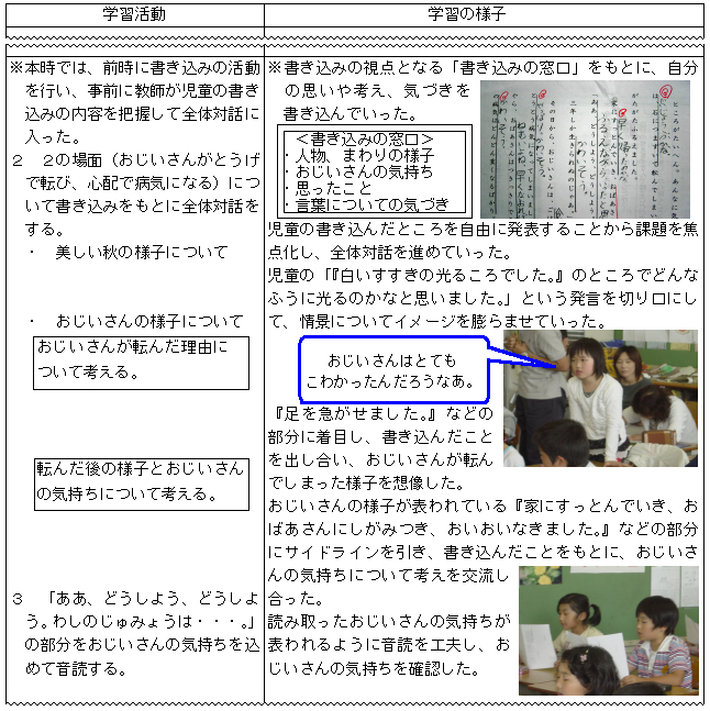 | (4)大切な言葉や文への書き込みによる読み取りの実践(第3学年) |