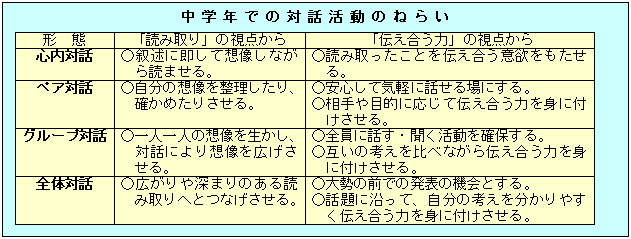 | 3、読みを交流し、広げ・深め合うための対話活動 |
