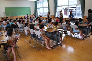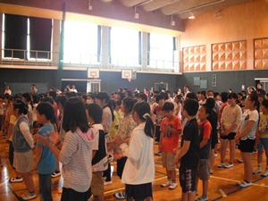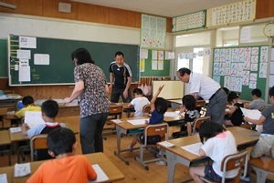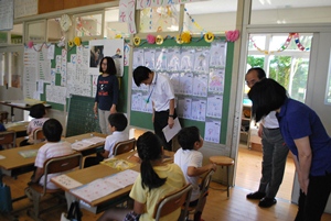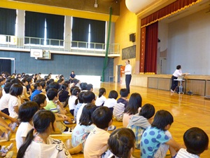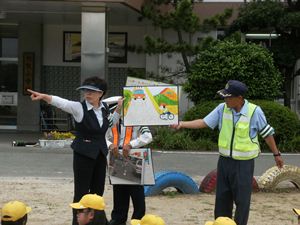 ■今年も、阿蘇市の交通指導員や地域交通安全活動推進委員の方々をはじめ、阿蘇警察署員や市役所の方の協力を得て交通教室を行いました。5月24日に3,4年、25日にそれ以外の学年が行いました。また、24日には、内牧自転車さんが自転車の点検をしてくださいました。■24日は、天気が良く、運動場で自転車の乗り方を中心に行いました。25日は、雨天のため体育館での教室になりましたが、1,2年生は道路の安全な歩き方、5,6年生は安全な歩き方と自転車の乗り方を学習しました。■多くの方々の協力により、充実した学習ができたことに感謝しております。この1年、交通事故ゼロをめざして取り組んでいきます。 |
