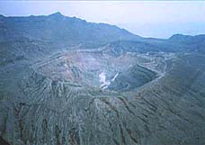 阿蘇中岳にある直径600m(深さ130m)の巨大な噴火口。 |