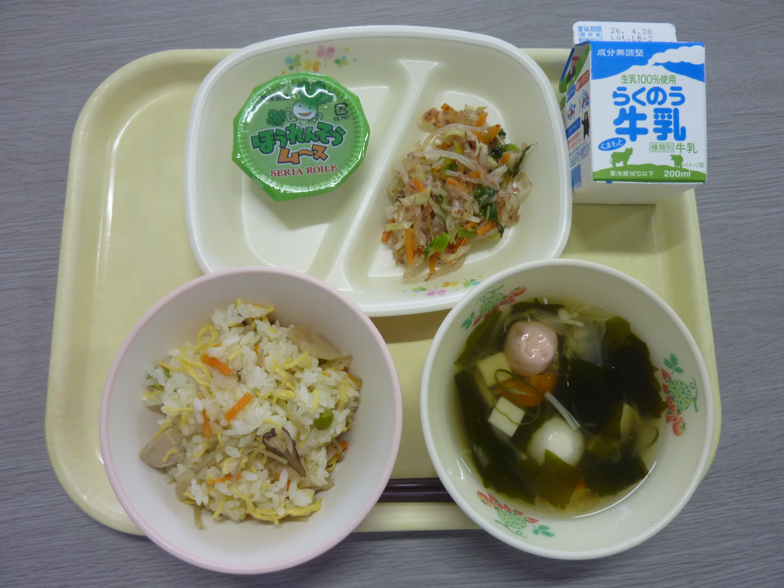 ちらしずし・牛乳・すまし汁・野菜の土佐和え・お誕生日デザート